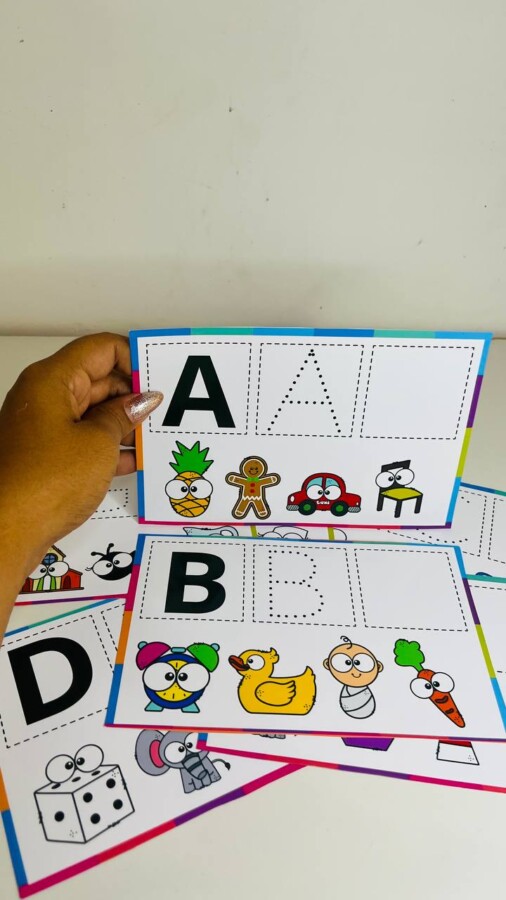 Com imagens para associação 🖼️ e linhas tracejadas ➖✍️, os pequenos podem praticar o traçado das letras enquanto relacionam sons e palavras de forma divertida e eficaz! 🚀💡